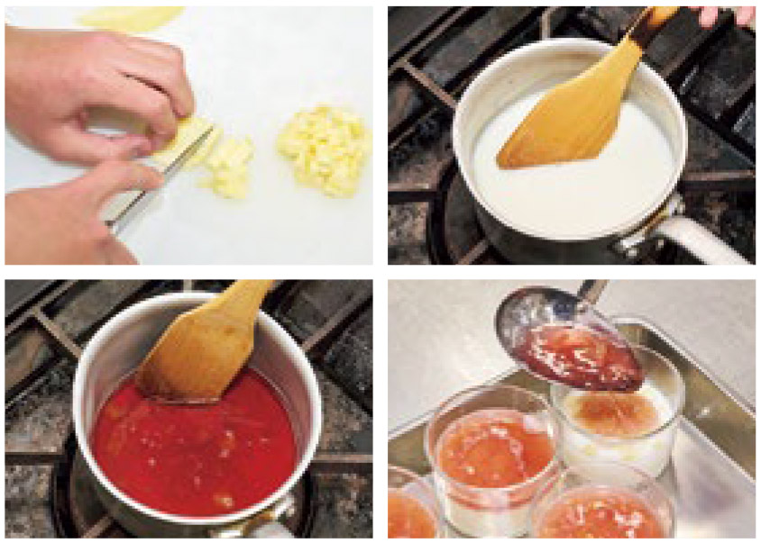 ❸あらかじめ粉ゼラチンを水でふやかしてき、ゼラチンが溶けるまで湯煎する。